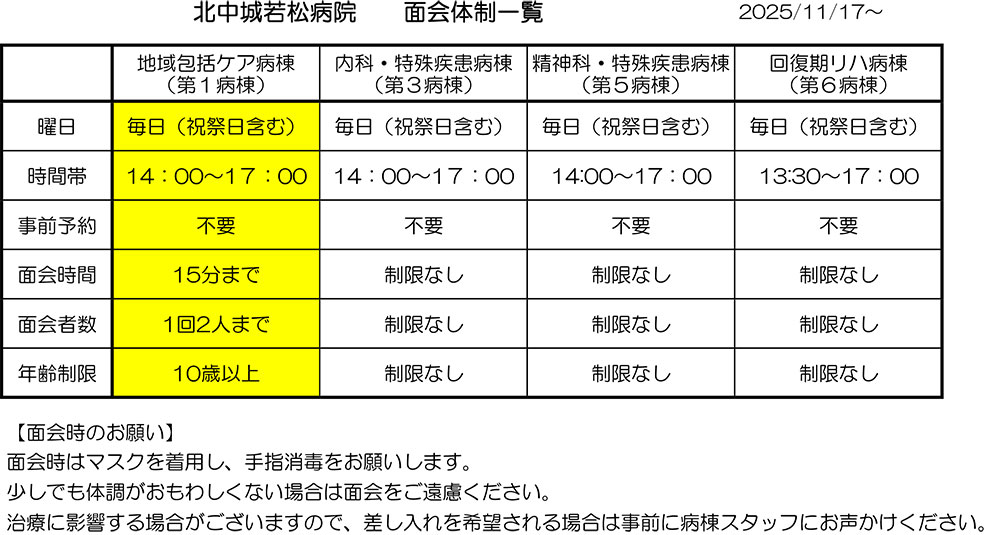 - 北中城若松病院の2025/11/17からの面会体制を更新
